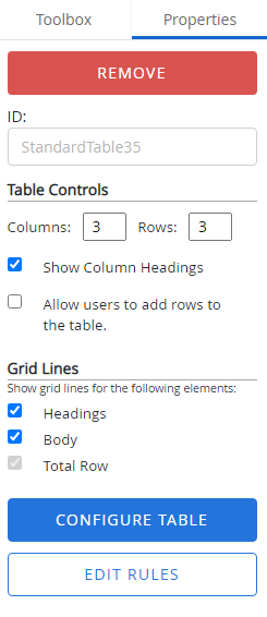 - Under the Properties tab, click Configure Table.