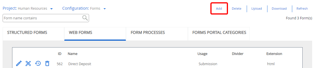 - Select Forms from the Configuration list.