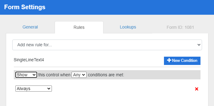 View / Edit Form Settings - Rules Tab