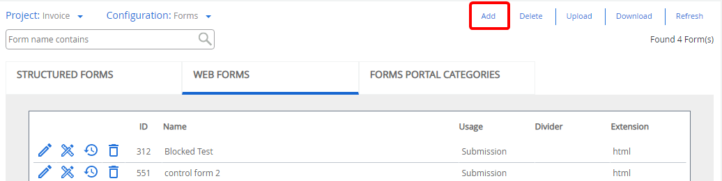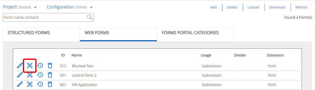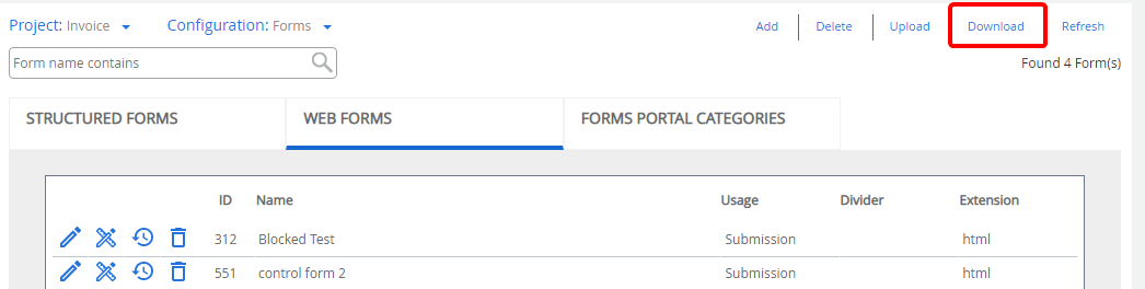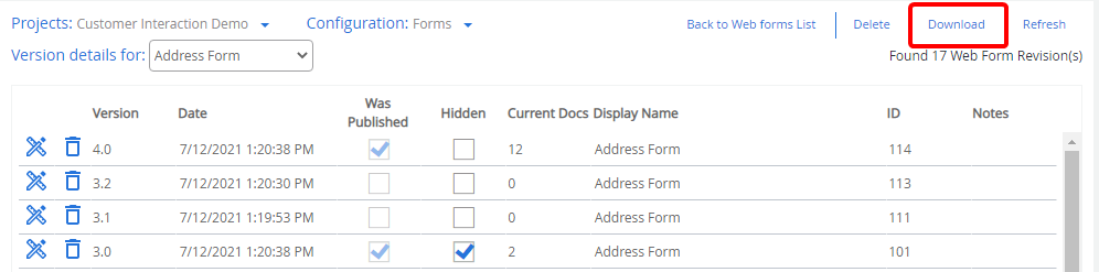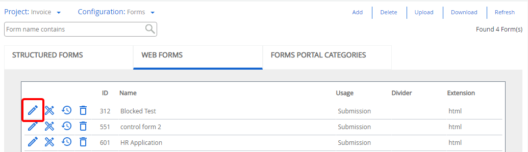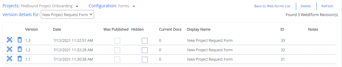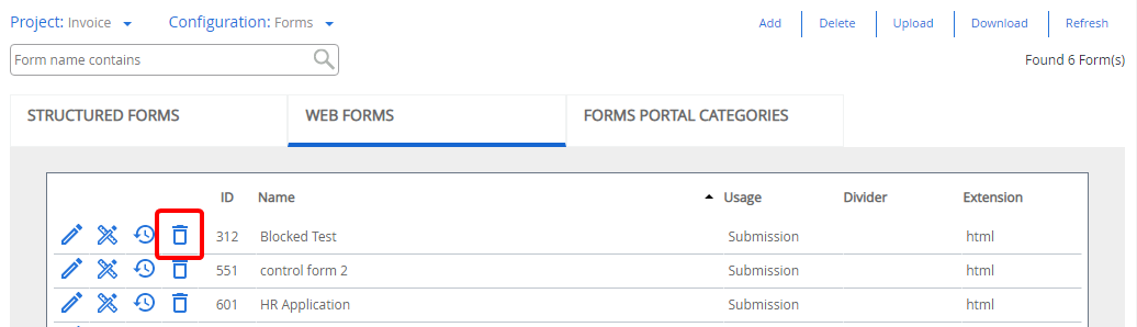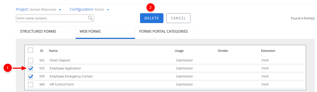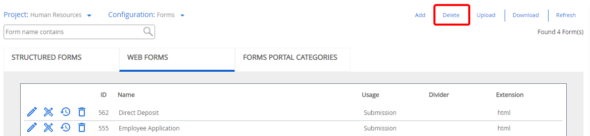 2. Select the check box next to the web form(s) you want to delete, then click Delete.