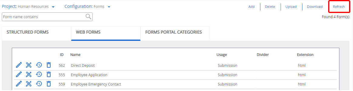 To ensure that your Web Forms page is up to date, you can refresh it.