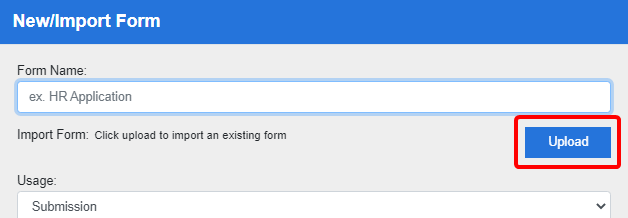 To upload a PDF, select a blank template. See Upload a fillable PDF form for more information.