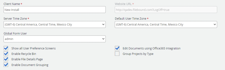 Default User Time Zone: The default time zone for users logging in to FileBound.