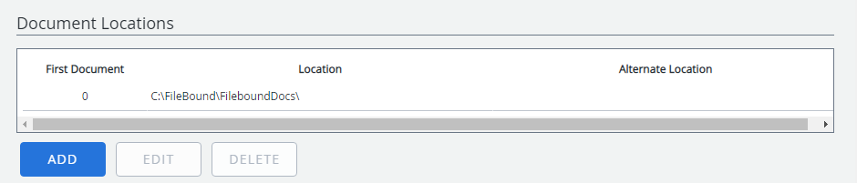 Note: When using FileBound Cloud you will not see this section, and do not need to configure the document storage location. This is handled by the FileBound Cloud Administrators.