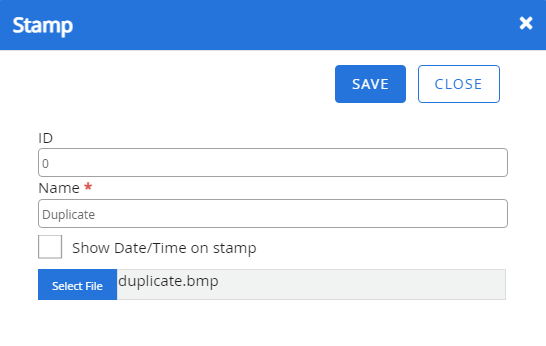- To include the date and time on the image of the stamp, select the Show Date/Time on stamp check box.