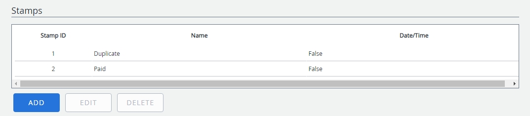 Stamps added in Main Options are global stamps. The stamps can be used by all users. Stamps can also be added for specific users. See User settings - Stamp tab for more information.