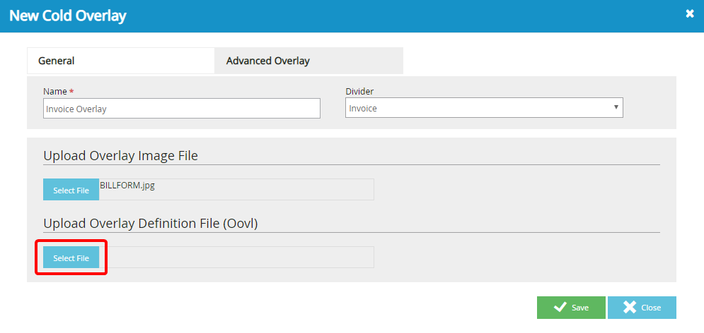 The Advanced Overlay tab allows Administrators to implement overlays that were created in an external overlay designer.