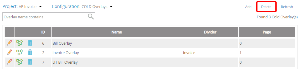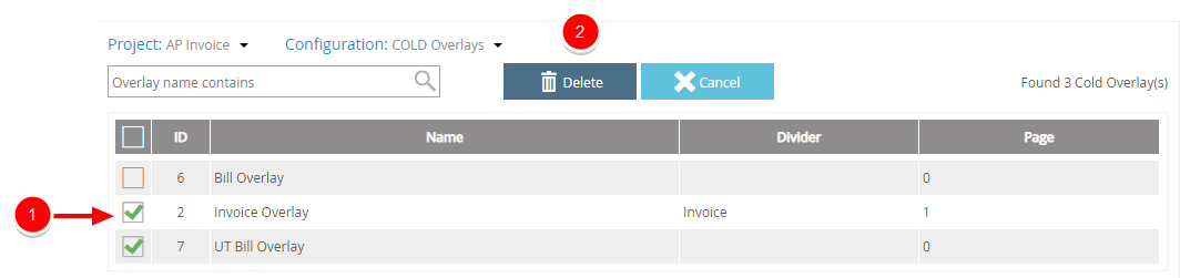 Select the check box next to the overlay(s) you want to delete, then click Delete.