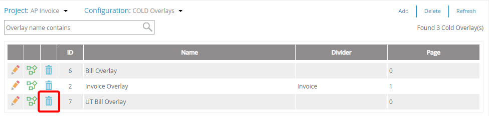 Click Delete next to the overlay you want to delete.