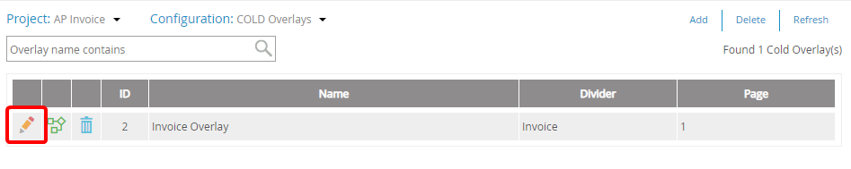 - Click Edit next to the project you want to delete an overlay from.