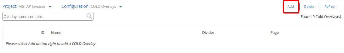 - Select COLD Overlays from the Configuration list.