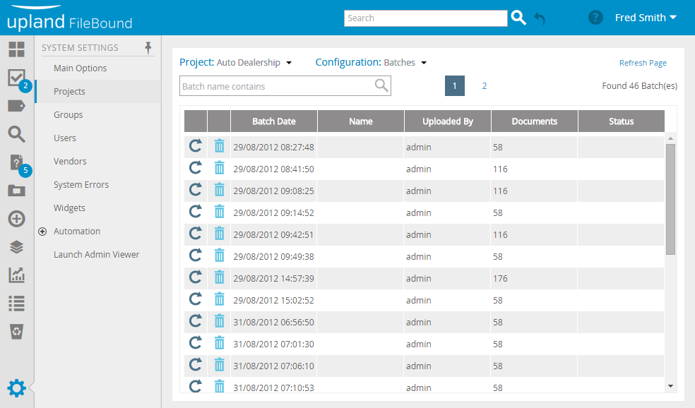 3. Select Batches in the Configuration list.