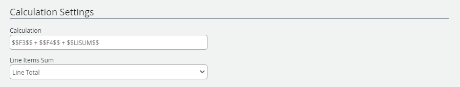 Line Items Sum: You can also include the sum of a related file (line item) field by selecting the field from this drop-down menu and using $$LISUM$$ in your calculation expression.