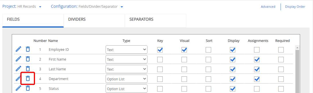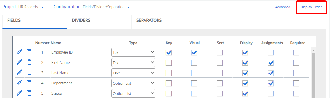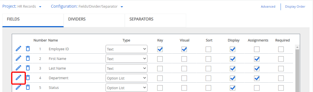 Assignments Page: Displays the index field as a column on the Assignments page. You can also select the Assignments check box on the Fields page to display the index field as a column on the Assignments page.
