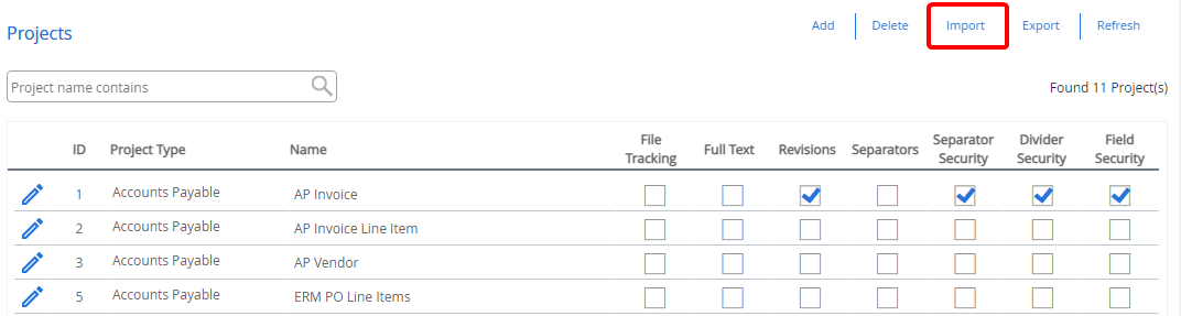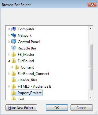 Note: FileBound always imports a project with its original name, although you can change the project name while exporting. A date and time stamp is appended to the imported project's name by default, during the import process.