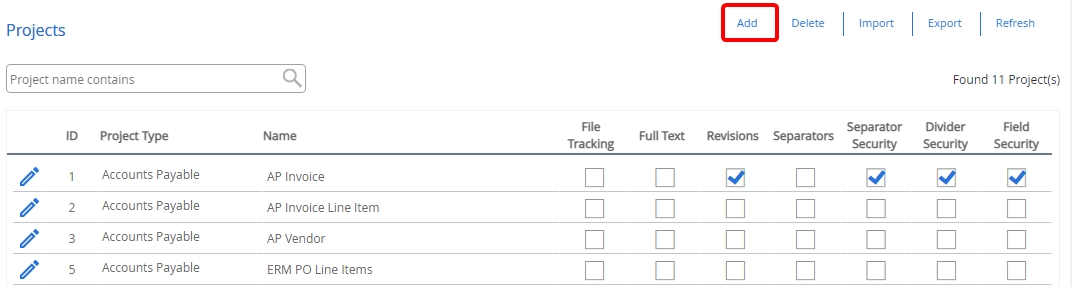 - On the Navigation menu, click Administration, then click Projects.