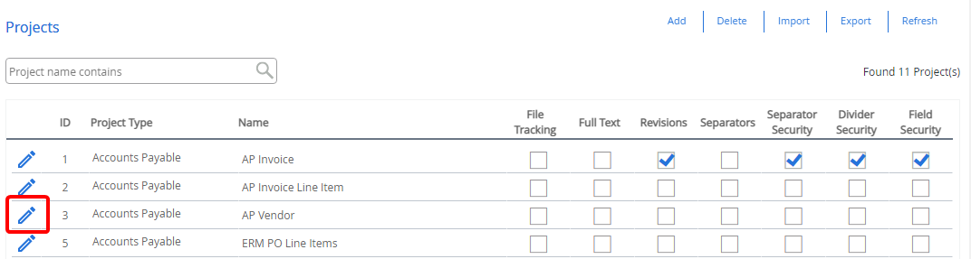 Click Edit next to the project you want to edit.