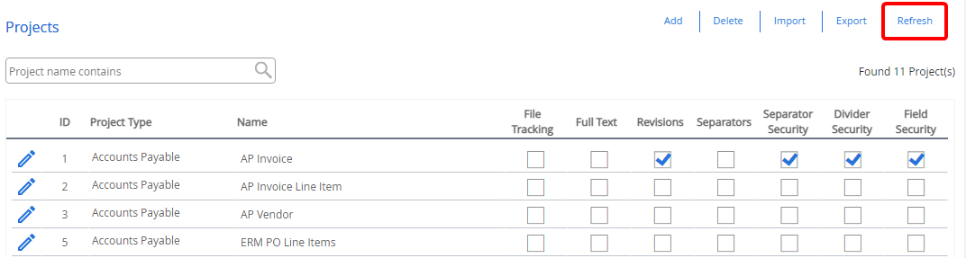 To view all the newly added projects, the System Administration can click Refresh on the Projects page.