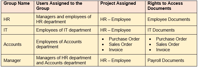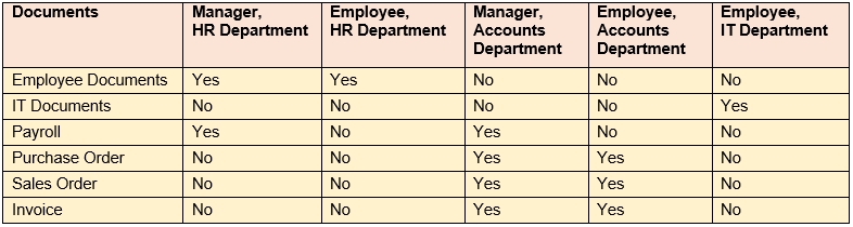 The table above represents the restrictions implemented for accessing employee documents and accounts documents.