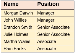 The table above lists the employees in the HR department and the position they hold.