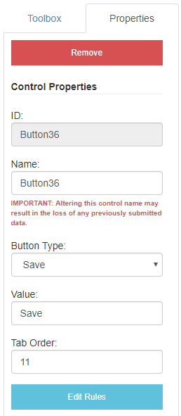 Edit Rules: Opens the Edit Rules window where you can configure conditional rules for the control. See Conditional rules for more information.