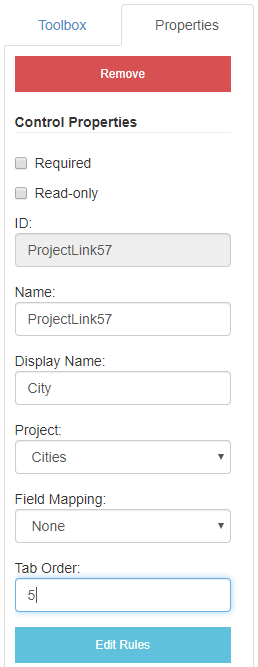 Edit Rules: Opens the Edit Rules window where you can configure conditional rules for the control. See Conditional rules for more information.