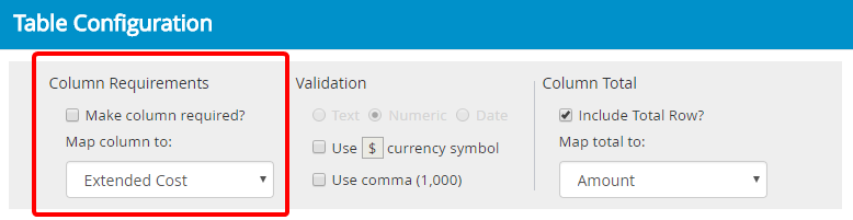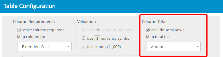 Include Total Row?: Adds a total row to the bottom of the column that will display the sum of all of the column values.