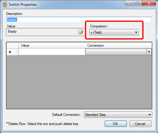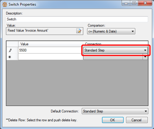 - Select a step from the Default Connection list, to specify that step as a default step.