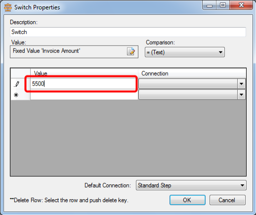 For example, in the image below, if the invoice amount is less than or equal to 5500, the document will me moved on to the Standard Step. Similarly, you can specify multiple conditions to determine the step a document will be moved on to.