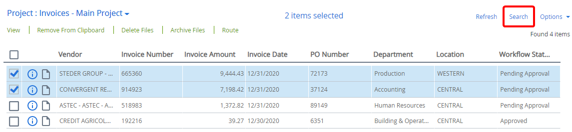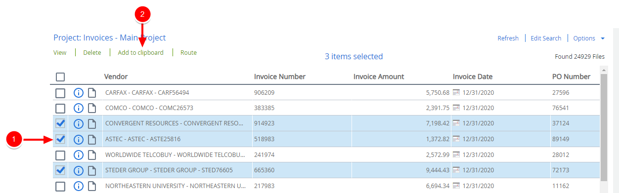 - On the Search results page, select the check box next to the file(s) that you want to add to the Clipboard.