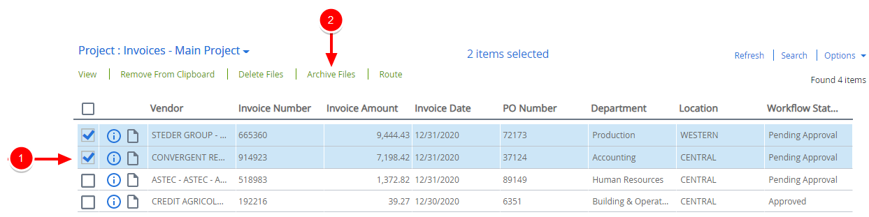 Select the check box next to the file(s) that you want to archive, then click Archive Files.