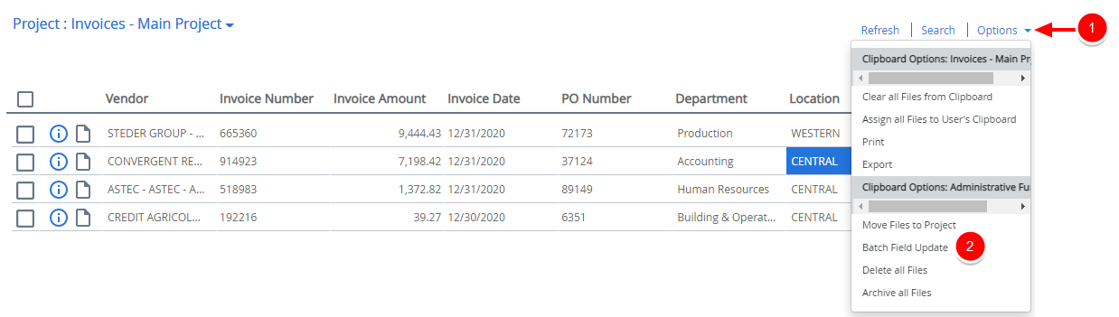 Click Options, then select Batch Field Update.