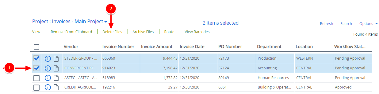 You can delete one or more files from a Clipboard. Deleted files are removed from your Clipboard AND deleted from FileBound.