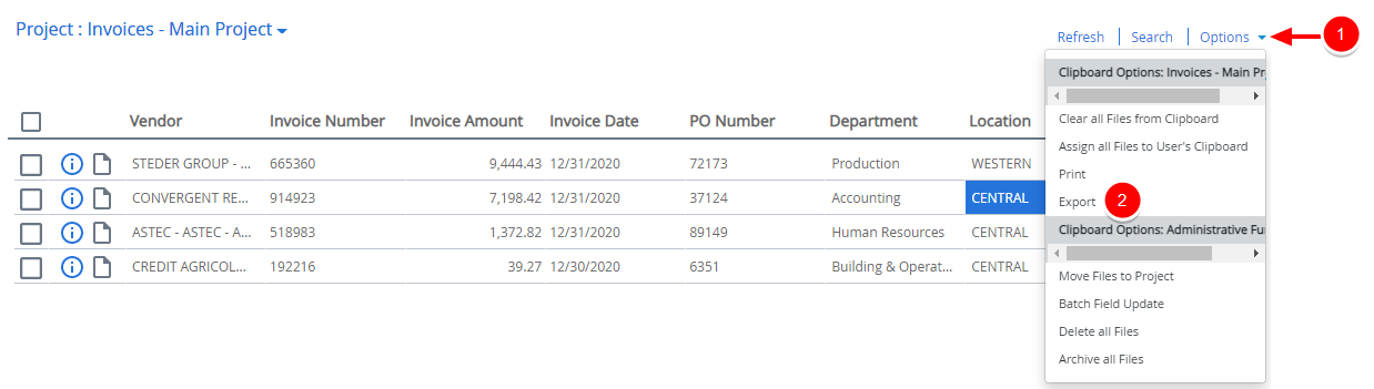 - Export To CSV: Exports the list of files in .csv format.