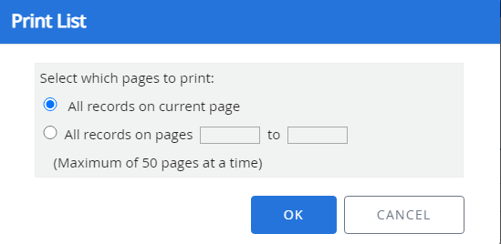 - All records on pages: Allows you to provide a page range for the file list that will be printed.