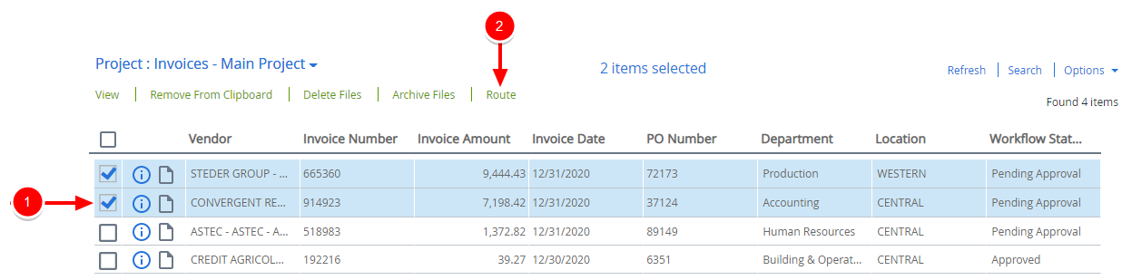 You can route the files on your Clipboard to a workflow process that has been created for the project. After you route a file, it will remain on your Clipboard and can be routed through another workflow process.