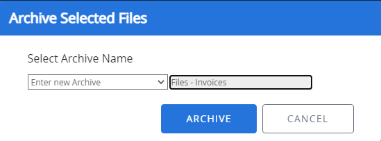 In the Archive Selected Files dialog box, select the archive file name from the Select Archive Name list.