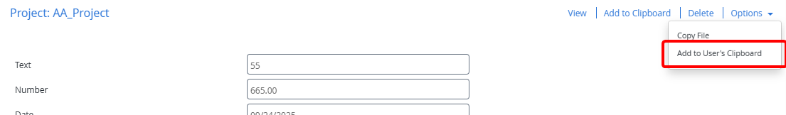 Click Options, then click Add to User's Clipboard.