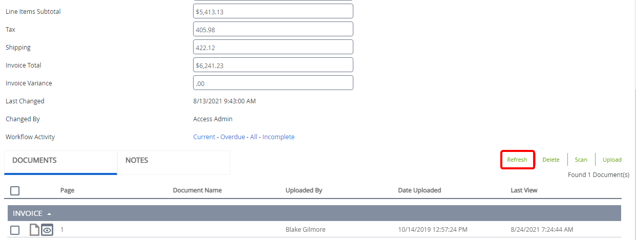 To ensure that the document list and information is up to date, you can refresh it.
