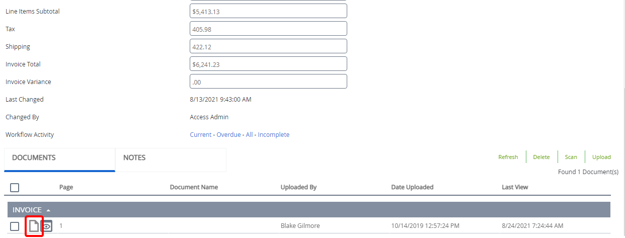 - Current: Click this link to see workflow information on the file, where the file is waiting on a process step for action to be taken.