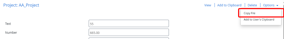 Click Options, then click Copy File.