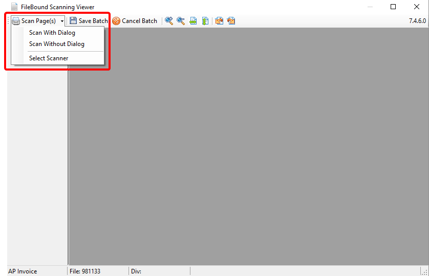 In the Scanning Viewer, select a scanning option.