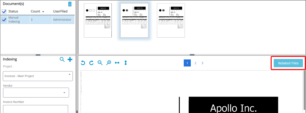 Note: The Related Files button is only available if a file relationship is established for the selected project.