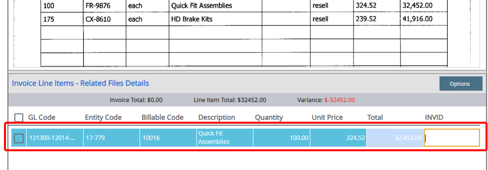 To delete a line item, select the check box next to the line item(s) you want to delete, then in the Options menu, click Delete Item.