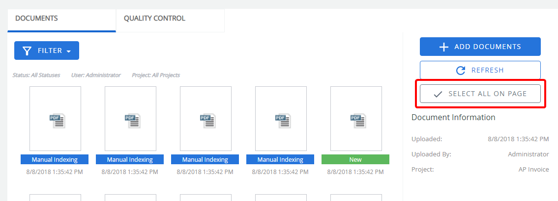 Once you click Select All on Page, the option will change to Deselect All on Page allowing you to easily deselect all of the documents.