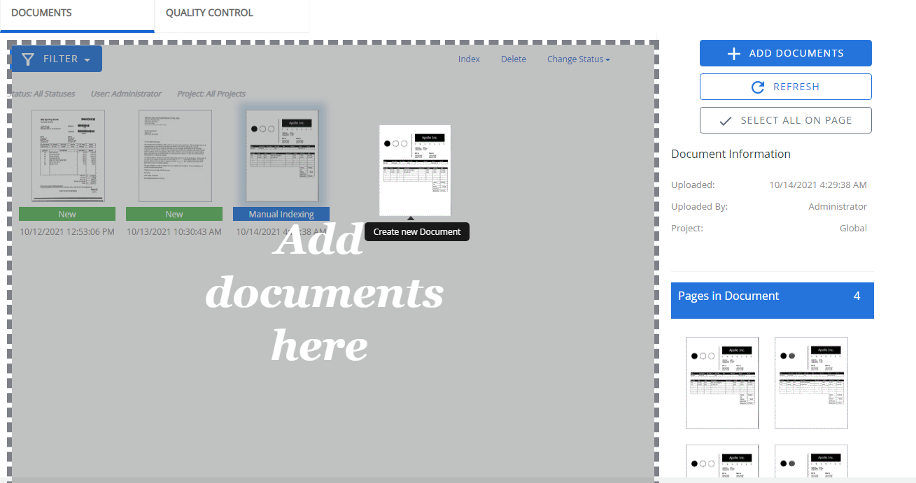 New: Documents that are uploaded or scanned into the Indexing Queue.
