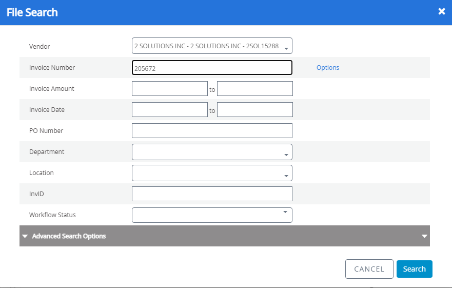 If multiple results are returned, select the appropriate file. The index fields are populated based on the file selected.