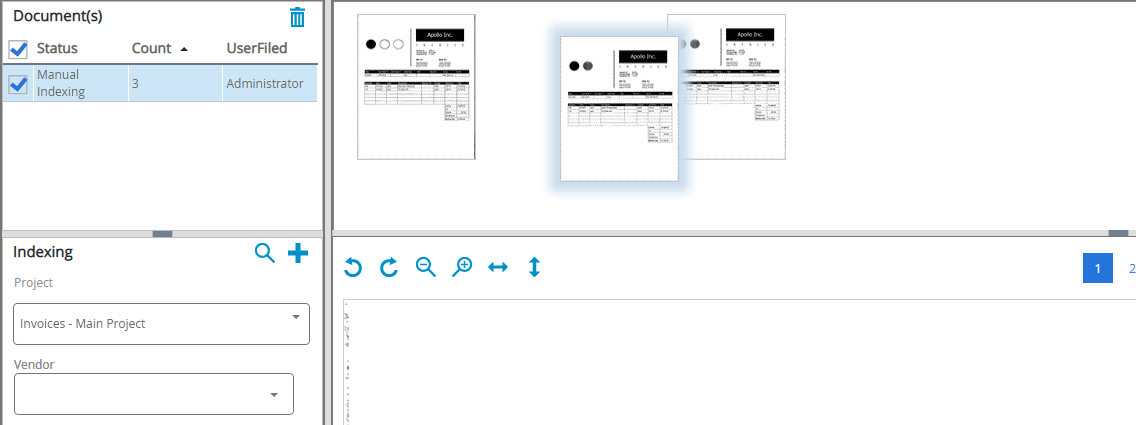 The Indexing Queue provides an area for documents that have not been indexed or associated with an existing file to be temporarily stored until indexing is completed. This is useful when multi-function copiers and other similar scanning devices are used to digitize the document because they do not have any method to index the document.