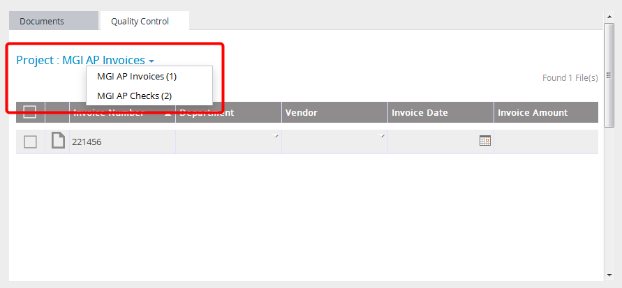 Click Project to select another project from the list. The files associated with the selected project that are in quality control are displayed.