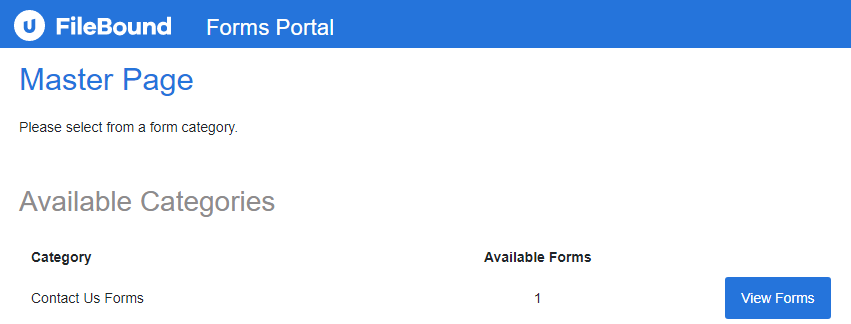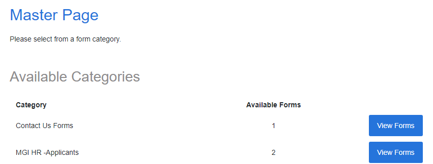 • Master Page: The Master page is where we enable forms to be able to be accessed from the Forms Portal online.